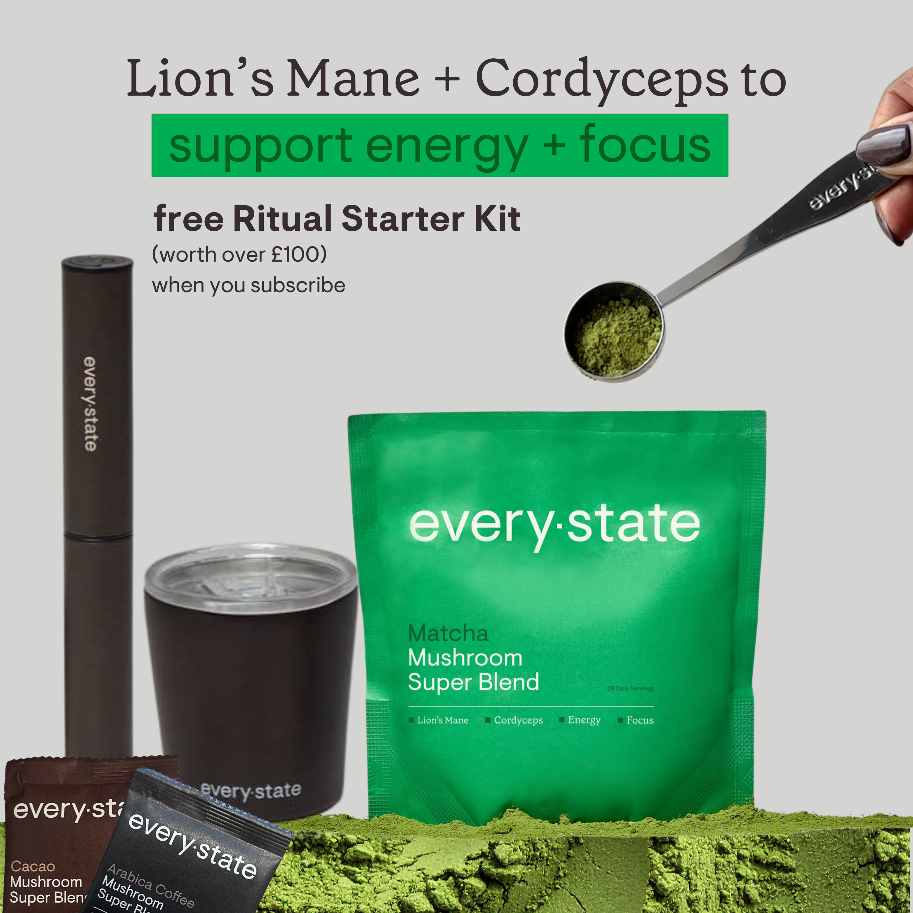 Matcha + Mushroom Super Blend Subscription - free ritual starter kit worth £100 with your first order